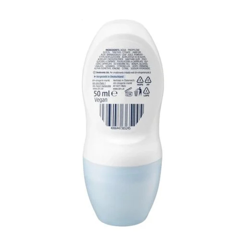 Антиперспирант Balea Sensitive имеет нежную формулу, которая обеспечивает эффективную защиту от неприятного запаха пота на 24 часа и освежает, увлажняет, тонизирует кожу. В составе есть алоэ вера - активно борется с воспалениями и ускоряет заживление микроповреждений. Витамин Е - смягчает и насыщает кожу полезными веществами. Формула средства без спирта не вызывает раздражения, поэтому можно пользоваться после бритья. Легкий формат роллера от Balea обеспечивает удобное нанесение и не оставляет пятен на одежде. Антиперспирант - поддерживает водный баланс и борется с бактериями, вызывающими неприятный запах.