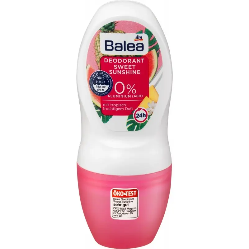 Антиперспирант Balea Sweet Sunshine обладает легким тропическим ароматом, который дарит ощущение свежести и обеспечивает надежную защиту в течение всего дня. Дезодорант эффективно нейтрализует неприятные запахи, деликатно ухаживает за кожей и поддерживает естественный водный баланс. Его формула создана, чтобы обеспечить надежную защиту от неприятного запаха, обеспечить оптимальное увлажнение кожи. Антиперспирант мгновенно впитывается без следов на одежде, позволяет коже дышать, а также не блокирует потоотделение. Средство от Balea представлено в форме роллера, что очень удобно и дарит ощущение свежести в течение всего дня.