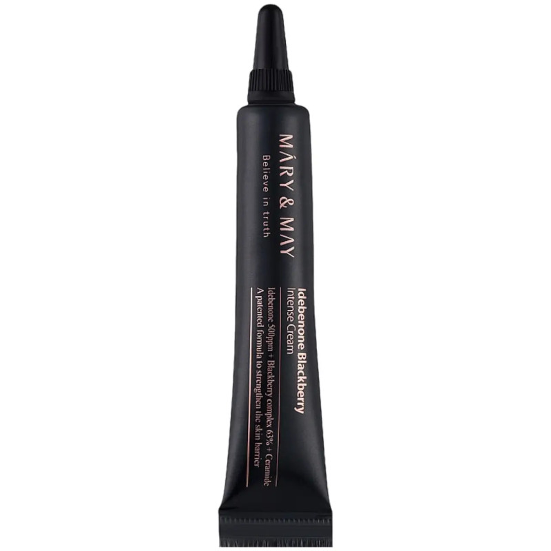 Крем Mary&May Idebenone Blackberry Intense Cream имеет сбалансированный состав и помогает с недостатком влаги, шелушением кожи и возрастными изменениями. В составе есть идебенон -мощный антиоксидант, что лучше витамина Е и коэнзима, помогает замедлить старение и предупреждает образование морщин. Экстракты ягод ежевики, голубики обладают антиоксидантными свойствами, они осветляют тусклую кожу, устраняют сухость и разглаживают мелкие морщинки. Регулярное использование крема поможет разгладить морщины и уменьшить их заметность, выровнять тон кожи и уменьшить проявления пигментации. Благодаря насыщенной формуле средства от Mary&May, он глубоко увлажняет кожу, обеспечивает ее необходимыми витаминами, повышает упругость и защищает кожу от преждевременного старения.
