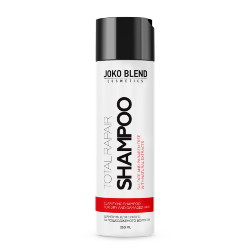 Безсульфатный шампунь Total Repair - разработан для ухода за сухими, ломкими и поврежденными волосами. Средство не содержит агрессивных компонентов, поэтому подходит для частого использования. В составе есть хитозан - помогает увлажнять волосы, укрепляет их и защищает от негативного воздействия внешних факторов. Натуральные экстракты и масла - питают волосы полезными компонентами, улучшают их состояние и внешний вид. Средство обеспечивает глубокое увлажнение и деликатное очищение. Шампунь действует мягко и эффективно очищает волосы и кожу головы от загрязнений, дарит ощущение свежести и комфорта. Активная формула способствует восстановлению структуры волос, укрепляет их по всей длине и возвращает естественную мягкость. Средство от Joko Blend бережно ухаживает за кожей головы и восстанавливает структуру волос.