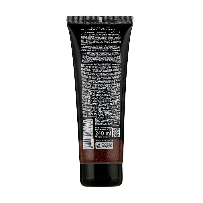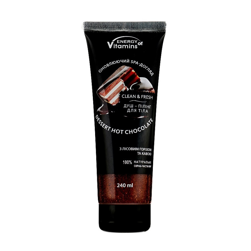 Душ-пилинг для тела Dessert Hot Chocolate (3310) Energy of Vitamins – это настоящий ритуал красоты, сочетающий в себе эффективность профессионального ухода и наслаждения нежным массажем. На основе очищающей формулы с мягкими ПАВ он деликатно, но тщательно устраняет загрязнение, оставляя ощущение свежести и легкости. Благодаря глицерину кожа сохраняет естественную влагу, не чувствуя сухости даже после глубокой очистки.