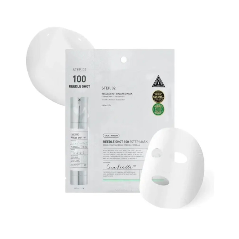Двухэтапная гидрогелевая маска для лица VT Cosmetics Mild Reedle Shot 100 2-Step Mask сочетание двух последовательных этапов обеспечивает комплексный уход и повышает эффективность активных компонентов.