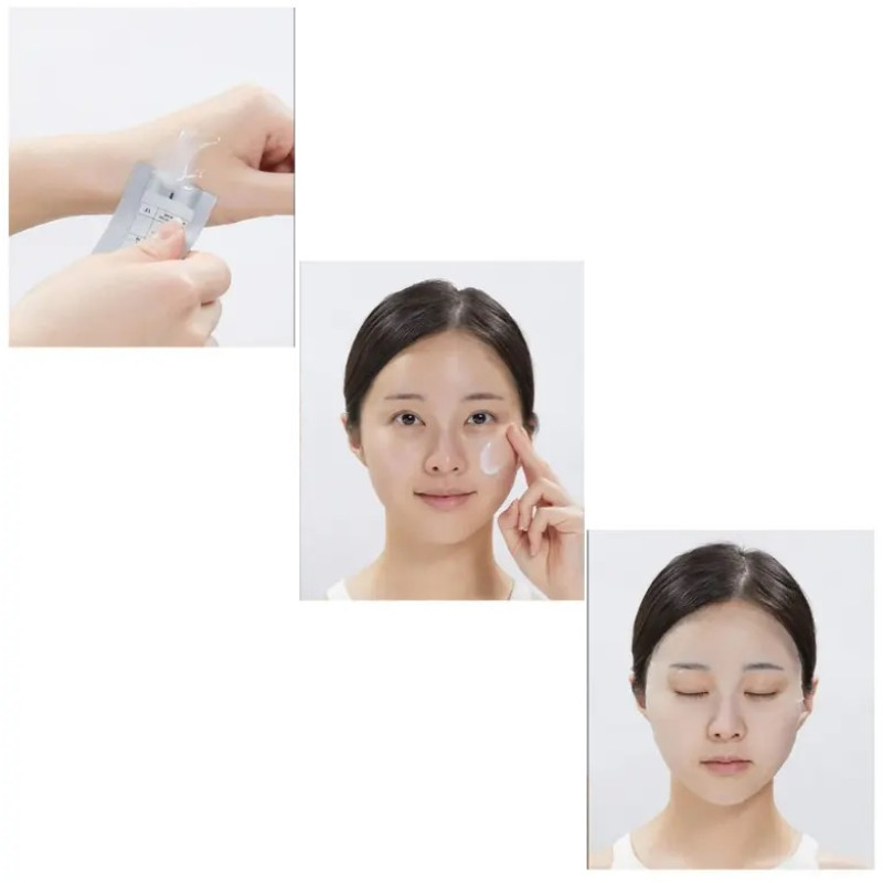 Применение: нанести ампулу, обозначенную как Step 1, на тщательно очищенное лицо и распределить по коже. Когда средство полностью впитается, открыть пакетик с маской, обозначенной как Step 2, и нанести ее на лицо. Через 10-20 минут снять маску и аккуратно распределить остатки эссенции по коже.