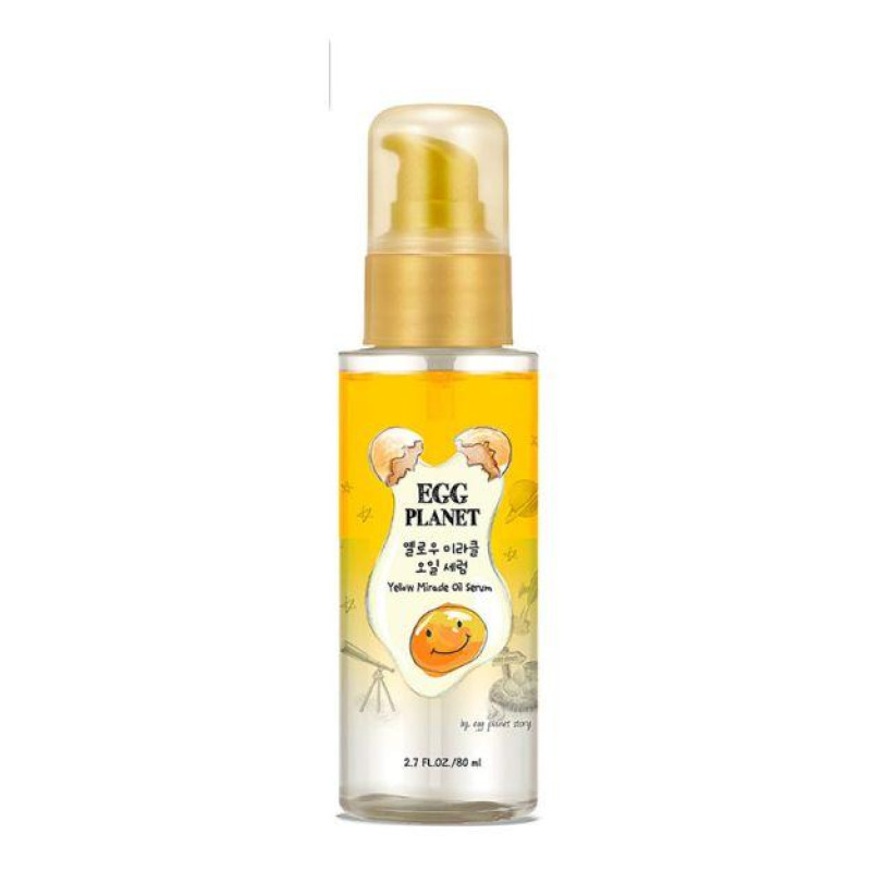 Оригинальная сыворотка-масло с яичными протеинами и кератином Egg Planet Yellow Miracle Oil Serum питает, увлажняет и защищает локоны, делает их мягкими и шелковистыми. Сыворотка облегчает расчесывание, предотвращает ломкость и выпадение волосков, склеивает посеченные кончики. Активные компоненты укрепляют фолликулы, стимулируют рост волос.