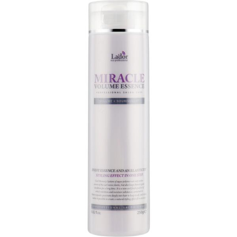 Эссенция LADOR Miracle Volume Essence - уникальное средство, которое поможет восстановить и укрепить волосы, а также зафиксировать укладку, придать локонам дополнительный объем.