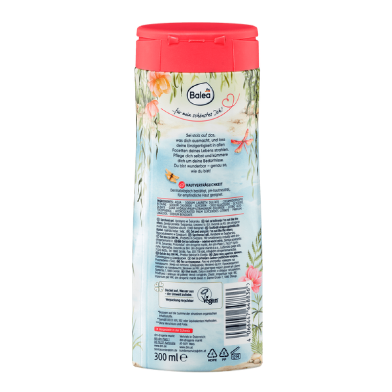 Гель для душа Balea I'm not like the otters обеспечивает нежную очистку, увлажнение и заботу о коже. Образует густую пену, эффективно удаляет загрязнение и мягко влияет на кожу, минимизируя возможное пересушивание.