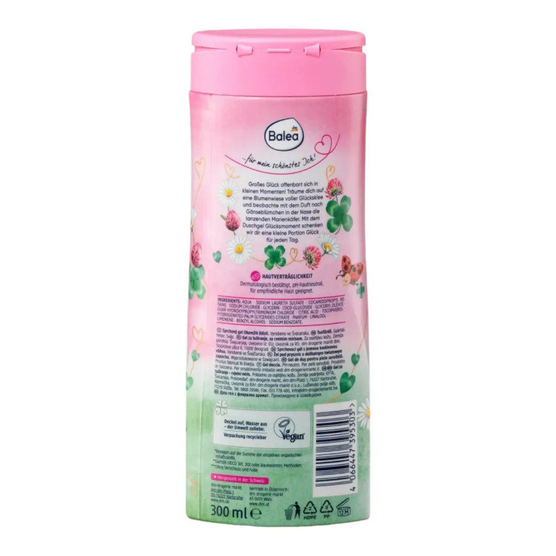 Гель для душа Момент счастья - создан для очищения и деликатного увлажнения кожи. Средство обладает изысканным цветочным ароматом, который дарит приятные эмоции, а специальная формула в составе обеспечивает коже мягкость, нежность и длительное увлажнение. Гель для душа имеет нейтральный pH, что дает смогу пользоваться даже с чувствительной кожей. Не содержит синтетических водорастворимых полимеров, что делает его экологически безопасным. Средство мягко очищает кожу, предотвращает пересушивание и дает комфорт после каждого пользования. гель для душа состоит из веганского состава без компонентов животного происхождения. Средство от Balea в себе сочетает заботу о коже, экологическую ответственность и возможность каждый день пользоваться.