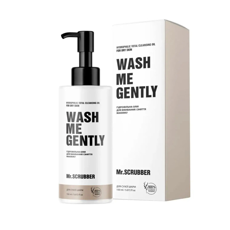 Гидрофильное масло для умывания и снятия макияжа Mr.Scrubber Wash Me Gently для сухой кожи – настоящий эликсир для кожи, объединяющий мощную силу растительных масел с мягкой, шелковистой очисткой. Она бережно смывает макияж, солнцезащитные средства и загрязнения, превращаясь при контакте с водой в легкое молочко, оставляющее кожу идеально чистой, увлажненной и сияющей.
