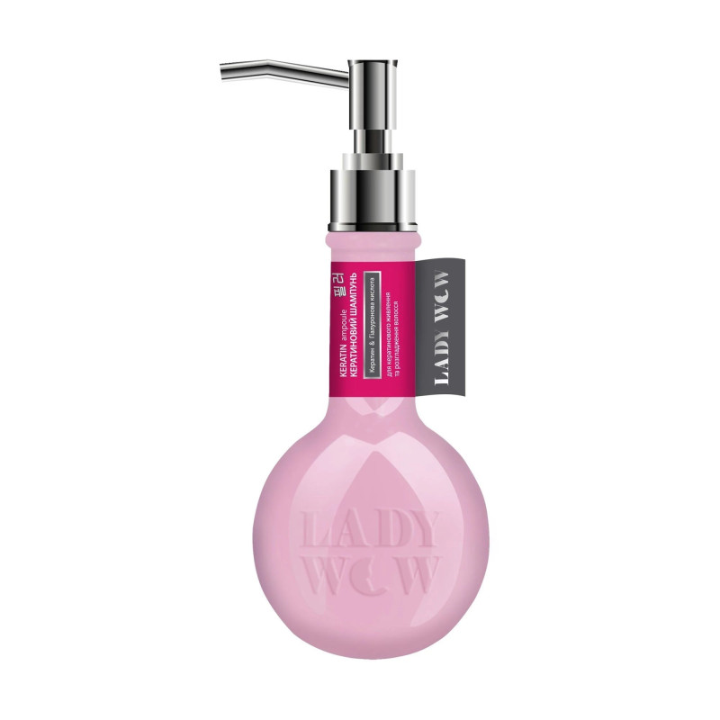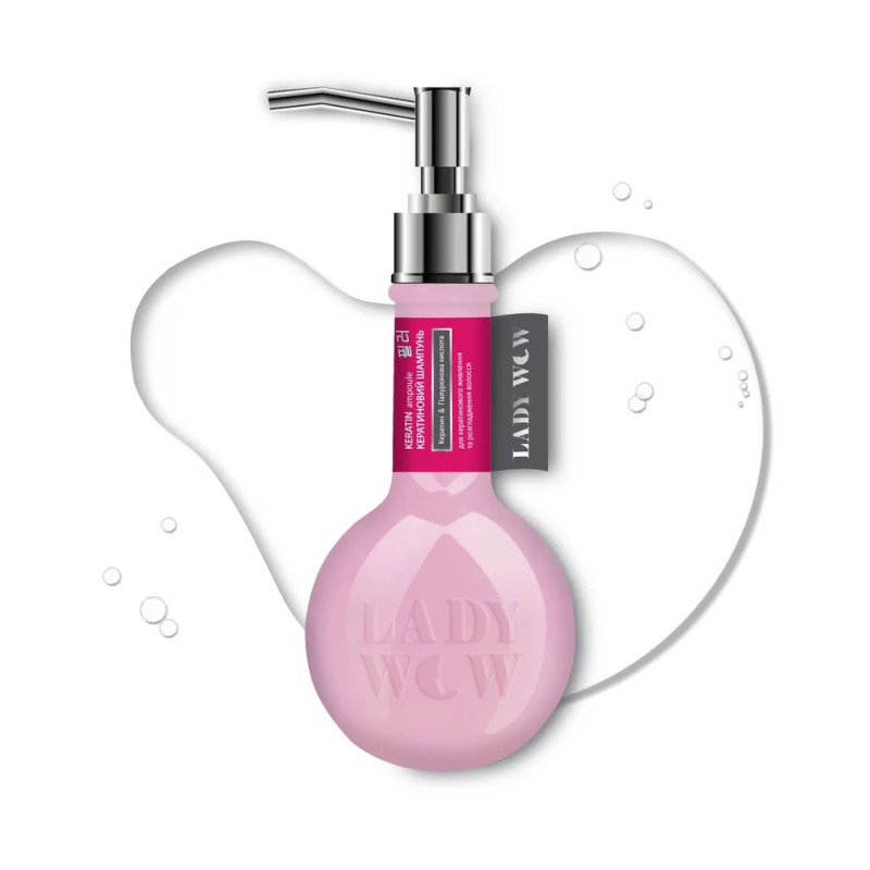 Кератиновый шампунь Lady Wow Keratin Ampoule предназначен для эффективного очищения, увлажнения и восстановления волос, сочетая в себе активные моющие компоненты и уходовые вещества. Его формула направлена не только на удаление загрязнений, но и на поддержание здоровья волос, его крепости и природного блеска.