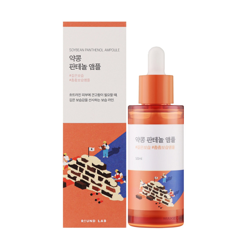 Концентрированная сыворотка с экстрактом соевых бобов ROUND LAB Soybean Panthenol Ampoule Эта сыворотка обеспечивает интенсивное увлажнение, питание и укрепление кожного барьера, что делает ее прекрасным средством для сухой, чувствительной и обезвоженной кожи. Благодаря комплексу активных компонентов, она способствует восстановлению, разглаживанию и защите от воздействия внешних факторов. Глицерин и дипропиленгликоль помогают коже удерживать влагу, предотвращая сухость и стянутость. В составе содержится натриевая соль гиалуроновой кислоты, которая поддерживает оптимальный уровень увлажнения и улучшает эластичность кожи.