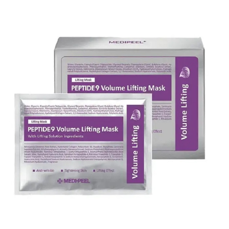 Лифтинг-маска для уменьшения морщин Medi-Peel Peptide 9 Volume Lifting Mask с увлажняющими, восстанавливающими и антивозрастными свойствами обеспечивает комплексный уход за кожей, придавая ей сияние и здоровый вид. Ее многокомпонентный состав содержит активные ингредиенты, способствующие глубокому увлажнению, питанию и регенерации.