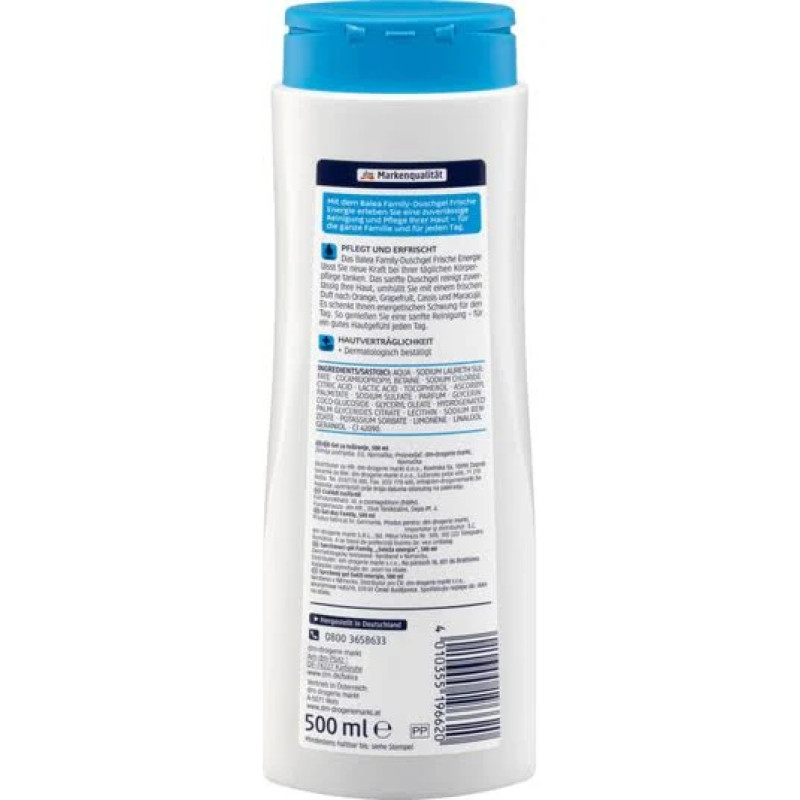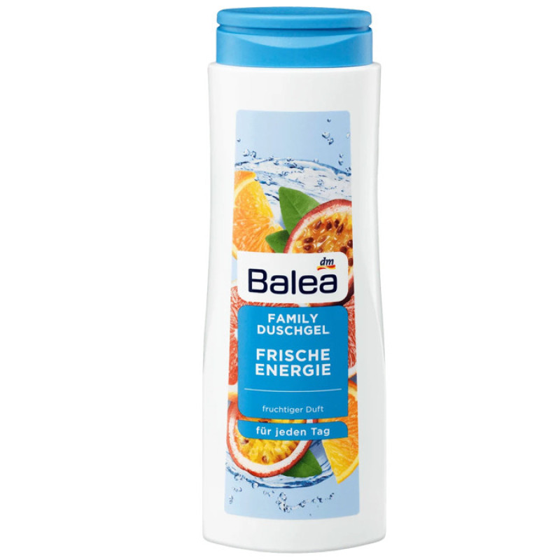 Гель для душа Balea Frische Energie - средство помогает поддержать естественный баланс увлажнения кожи. В составе есть насыщенный аромат с нотками апельсина, грейпфрута, маракуйи и черной смородины, которые наполняют энергией и поднимают настроение. Молочные протеины - питает кожу аминокислотами, которые способствуют восстановлению коллагена и эластина. Молочная кислота - это ингредиент, который нежно ухаживает за кожей, успокоит раздражения и помогает поддержать ее гладкость. Гель для душа эффективно очищает кожу от загрязнений и излишков себума, не нарушает естественный рН кожи. Средство от Balea имеет свежий фруктовый аромат, который дарит ощущение свежести и комфорта.