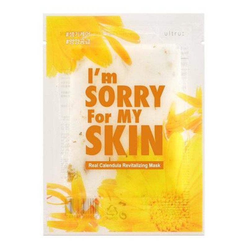 Маска тканевая для лица Ultru I'm Sorry For My Skin Real Calendula Revitalizing Mask - специально разработана для ухода за тусклой и повреждённой кожей. Она превосходно обогащает влагой, устраняет раздражения, избавляет от воспалений, дарит коже ровный тон и прекрасный здоровый блеск.