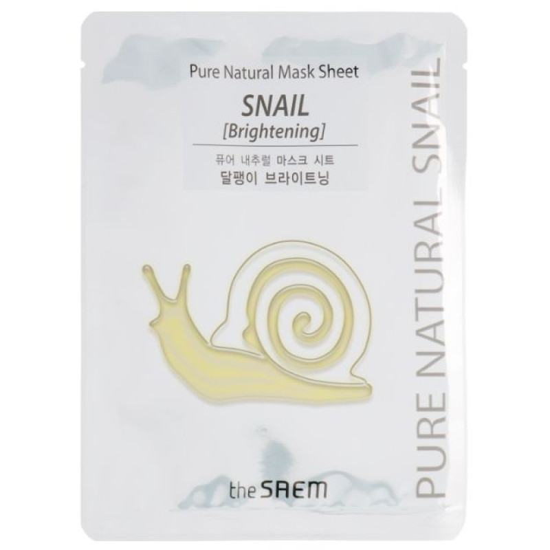 Тканевая маска Pure Natural Mask Sheet Snail Brightening с фильтратом слизи улитки помогает быстро избавиться от следов усталого лица и стресса, сделав вид кожи более свежим. Все компоненты в составе восстанавливают кожный покров, увлажняют и смягчают состояние кожи. Фильтрат из слизи улитки стимулирует создание коллагена и эластина, которые заживляют небольшие повреждения и кожа становится более упругой. Экстракты лотоса и эдельвейса уменьшают пигментацию, устраняют нездоровый тон и делают кожу сияющей. Экстракт корня солодки уменьшает воспаление, оказывает антибактериальное действие и помогает бороться с высыпаниями. Экстракт корня имбиря регулирует выработку себума, нормализуя жирность кожи. Маску можно использовать, как антивозрастной уход, так как она разглаживает мелкие морщинки и помогает бороться с первыми признаками старения. Pure Natural Mask Sheet Snail Brightening станет вашим незаменимым средством для ухода за уставшей, тусклой или раздраженной кожей. Маска The Saem поможет ощутить невероятную мягкость и комфорт, которые останутся с вами надолго.