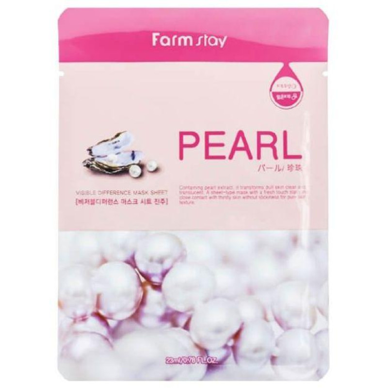 Маска Farmstay Visible Difference Mask Sheet Pearl - насыщает клетки полезными минералами и витаминами, выравнивает тон, делает кожу более упругой и подтянутой.