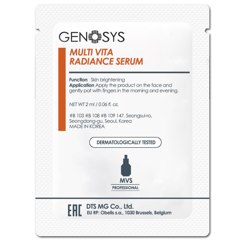 Тестер мультивитаминной сыворотки для лица Genosys Multi Vita Radiance Serum имеет комплексный состав, направленный на увлажнение, успокоение и улучшение состояния кожи.