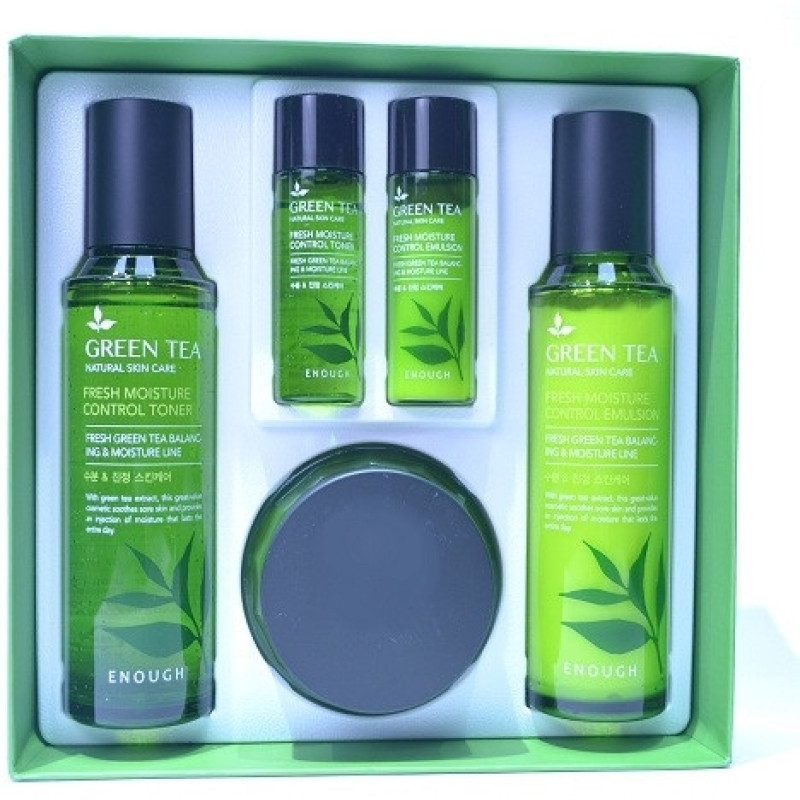 Набор Green tea moisture control 3 set состоит из трех полноразмерных высокоэффективных средств(тонер,эмульсия, крем) и двух миниатюр ( тонер и эмульсия).