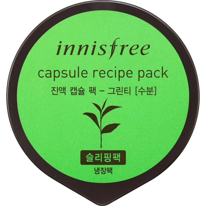 Маска Capsule Recipe pack Green tea Innisfree отлично увлажняет и очищает кожу, уже после первого ночного применения ваше лицо будет выглядеть свежим, отдохнувшим и здоровым. В основе продукта натуральный экстракт зеленого чая, извлеченный из свежих листьев, который богат аминокислотами и минералами, активно питает клетки на протяжении 12 часов, действует как сильнейший антиоксидант, избавляет от пагубного влияния свободных радикалов, замедляет процесс старения. Жирные кислоты - активизируют выработку коллагена, восстанавливают коллагеновые волокна, препятствуют их разрушению, делают дерму более упругой и эластичной, избавляют от первых признаков старения, разглаживают мимические морщинки, встраиваются в липидный слой и укрепляют его, препятствуют пересушиванию и шелушению эпидермиса. Экстракт корня вяза - защищает от вредного влияния ультрафиолетового излучения, ветра и холода, укрепляет тургор кожи, избавляет от таких недостатков как: угри, прыщи, акне и другие воспаления, насыщает витаминным комплексом. Бетаин – нормализирует электролитный баланс, способствует глубокому увлажнению, заживляет ранки и микротрещинки, избавляет от следов пост акне. Экстракт амаранта – подтягивает овал лица, возвращает коже упругость, избавляет от нежелательной пигментации, выравнивает тон и рельеф дермы. Экстракт центеллы – успокаивает, нежно снимает воспаления и раздражения, растворяет защитную оболочку вредоносных бактерий, не позволяет им размножаться, укрепляет стенки капилляров, улучшает микроциркуляцию. Экстракт риса – проникает глубоко в поры, абсорбирует остатки загрязнений, эффективно очищает, делает кожу матовой и бархатистой. Лецитин – оказывает действие на восстановление барьерных функций эпидермиса, процессы питания клеток, избавления их от шлаков. Экстракт апельсина – оказывает биостимулирующее действие, ускоряет обменные процессы в клетках, разглаживает кожный покров, снимает мышечное напряжение. Витамин Е - способствует удержанию влаги придает гладкость, тонизирует, препятствует появлению дряблости дермы. Цирамиды являются важным компонентом в клеточных мембранах, которые задерживают молекулы воды.