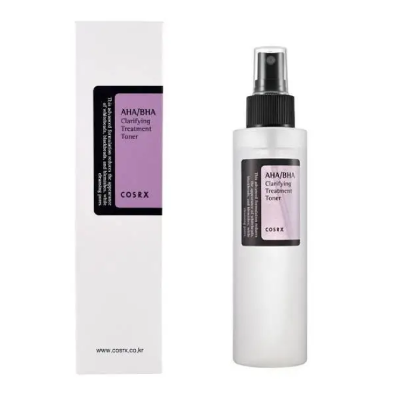 Тонер AHA/BHA Clarifying Treatment - ежедневный уход с мягким кислотным действием, который деликатно очищает поры, выравнивает текстуру кожи и предотвращает появление недостатков. В составе есть гидролат белой ивы, это источник BHA и гликолевая кислота АНА, которые обеспечивают эффективное и мягкое отшелушивание и обновление кожи. Яблочная вода - природный антиоксидант, который стимулирует клеточное обновление. Аллантоин - успокаивает раздражение, увлажняет и способствует заживлению воспалений. Пантенол - уменьшает покраснения, восстанавливает поврежденную кожу и поддерживает оптимальный уровень увлажнения. Тонер работает над отшелушиванием мертвых клеток кожи, предотвращает появление черных точек и комедонов, регулирует выработку кожного сала, осветляет и выравнивает тон лица. Тонер от COSRX подойдет для жирной, комбинированной и проблемной кожи. Средство от COSRX имеет удобный формат с распылителем, быстро впитывается, не оставляя липкости и дискомфорта.