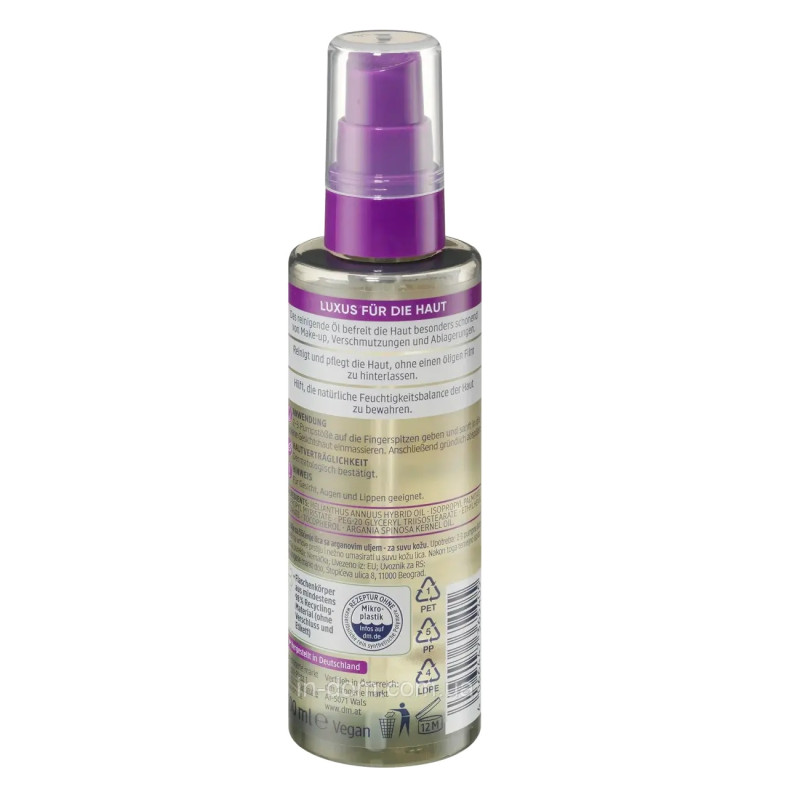 Масло для снятия макияжа и очищения кожи Balea Reinigungsöl – это эффективное удаление косметики, увлажнение и уход. Ее формула сочетает натуральные масла, эмоленты и антиоксиданты, которые вместе способствуют деликатному очищению без пересушивания или раздражения кожи.