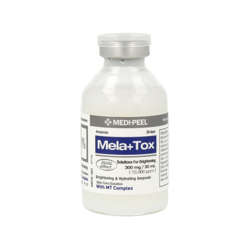 Сыворотка Mela Plus Tox Ampoule эффективно устраняет пигментные пятна, выравнивает тон, осветляет веснушки и следы постакне. Средство работает в нескольких направлениях. Оно качественно увлажняет, успокаивает, снимает раздражения и зуд, снижает уровень меланина, предупреждает фотостарение, защищает от пагубного влияния солнечной радиации, регулирует деятельность сальных желез.