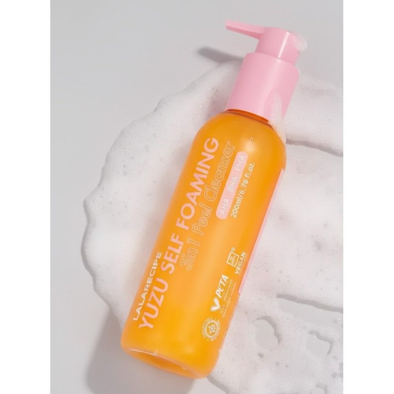 Осветляющая пенка для умывания Lalarecipe Yuzu Self Foaming 3 in1 Peel Cleanser представляет собой уникальный продукт для интеллектуального очищения, который заменяет сразу три этапа ухода: удаление загрязнений, пилинг и выравнивание тона. Специалисты марки Lalarecipe создали формулу на основе экстракта юдзу, который является мощным природным антиоксидантом. Данная пенка эффективно борется с «серым» цветом лица, следами постакне и излишней жирностью. Кислородные пузырьки, образующиеся при нанесении, проникают глубоко в эпидермис, обеспечивая микромассаж и насыщая клетки кислородом, в той время как комплекс кислот бережно растворяет кератиновые связи, делая кожу мягкой и фарфоровой.