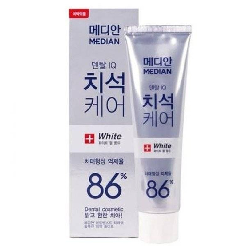 Dental Cosmetic White Median – профессиональная корейская отбеливающая зубная паста. Средство имеет высокий уровень абразивности RDA-90, что позволяет качественно устранить зубные бляшки (налет на эмали), камни, оставшуюся пищу и неприятный запах. Предназначение пасты – полировать и отбеливать зубы, не истончать и не повреждать эмаль. В структуре имеются специализированные элементы, которые ликвидируют зубной налет, разжижают его и предотвращают его последующее возникновение. Триклозан- избавляет от микробов, а фтор укрепляет эмаль. Паста применяется для профилактики воспалительного процесса десен, пародонтоза, предупреждает развитие зубного камня, отбеливает и укрепляет зубы, освежает дыхание. Идеально подходит для людей с тонкой и чувствительной эмалью зубов.