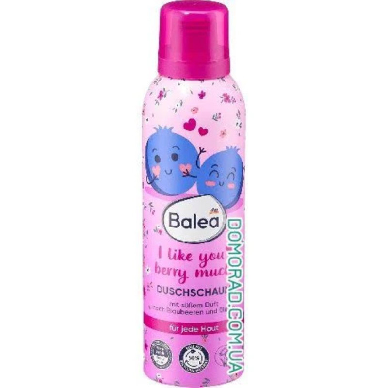 Пенка для душа Balea I like you berry much - нежно ухаживает и очищает кожу во время душа, ее деликатная форма делает кожу шелковистой, гладкой и ухоженной. Средство от Balea дарит стойкий аромат сочных ягод и нежной ванили, окутывает каждый уголок тела и дарит настоящее удовольствие. Благодаря специальной формуле не вызывает аллергии, не содержит спирта и барников, имеет веганский состав. Эта пена превратит ежедневный уход в чувственную процедуру, наполнит этот момент ароматом и нежностью. В составе есть черника, которая дарит фруктовый аромат и глицерин, который придает коже мягкость и эластичность.