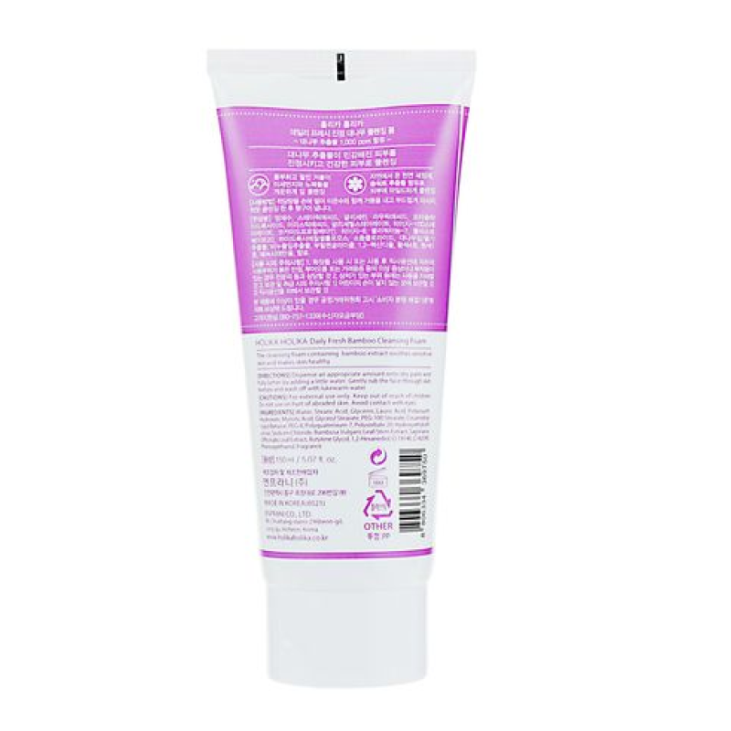 Пенка DAILY FRESH BAMBOO CLEANSING FOAM - эффективно удаляет загрязнения, себум и остатки макияжа, при этом глубоко очищает поры. В составе есть антисептические компоненты, которые устраняют бактерии и грибки, что могут запустить воспалительные процессы и также предотвращают появление высыпаний. Экстракт бамбука проявляет мощное антиоксидантное и ревитализирующее действие, которое помогает ускорять обновление клеток, уменьшает покраснения, сужает поры и регулирует работу сальных желез. Пенка не пересушивает кожу и сохраняет ее естественный баланс, даря ощущение свежести после пользования. Средство от Holika Holika делает кожу мягкой, чистой и без недостатков.