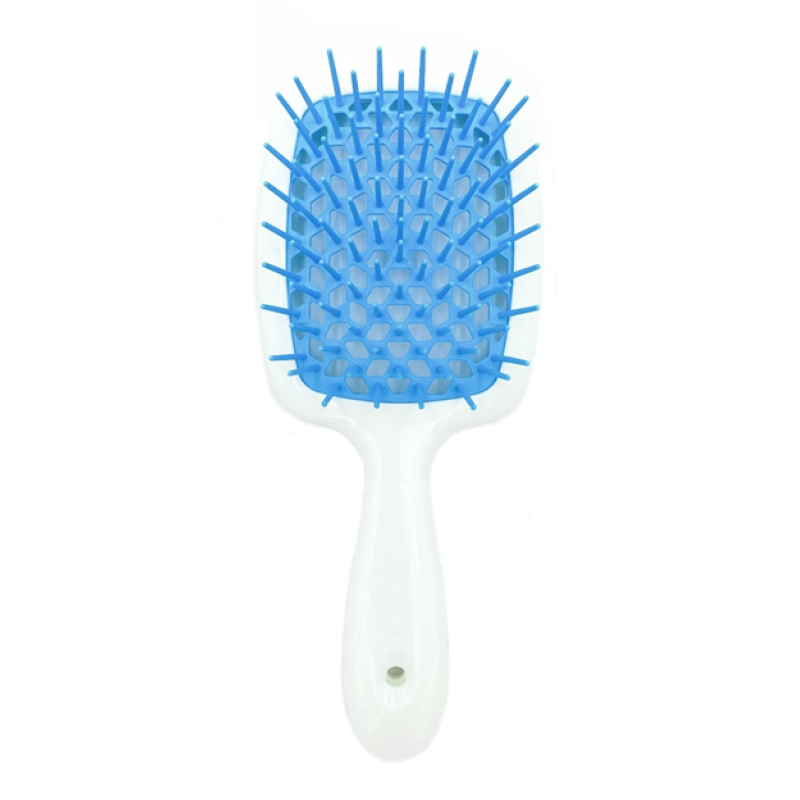 Итальянская пластиковая расческа Superbrush дарит невероятно приятные ощущения при проведении привычной, рутинной процедуры сушки, расчесывания и укладки волос. Перфорированная основа в виде пчелиных сот пропускает горячий воздух во время просушивания с помощью фена. Щетинки имеют скругленные кончики, чтобы производить легкий массаж кожи. При этом происходит стимуляция кровоснабжения, укрепляются фолликулы, улучшается состояние волосяных нитей.