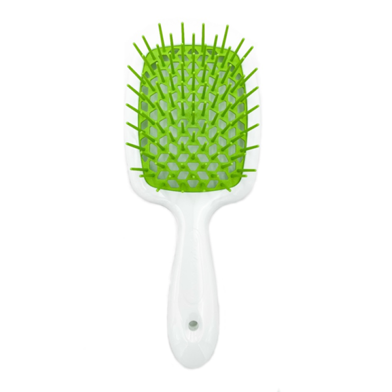 Белая пластиковая расческа Superbrush разработана для качественного и бережного расчесывания волос любого типа и длины, сушки и укладки, создания различных причесок.