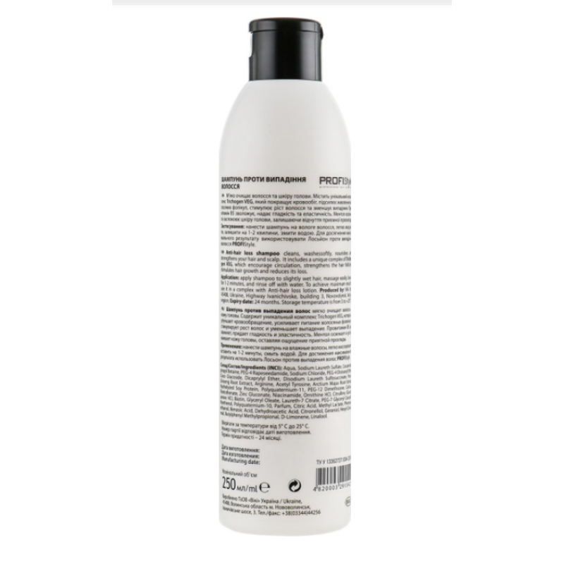 Шампунь ANTI-LOSS - надежный помощник в борьбе с выпадением волос. Мягкая формула деликатно очищает кожу головы и пряди, не пересушивает их, а активные компоненты работают над укреплением корней и стимулируют рост новых волос. В составе есть экстракт корня женьшеня - пробуждает волосяные фолликулы, активизирует рост и укрепляет корни. Экстракт корня лопуха - питает, улучшает микроциркуляцию и борется с ломкостью. Гидролизованный соевый белок - укрепляет структуру волос, делает их эластичными и упругими. Пантенол - глубоко увлажняет, дарит гладкость и естественный блеск. Витамины B3 и B5 - стимулируют рост, предупреждают выпадение и восстанавливают поврежденные участки. Средство от PROFIStyle работает над заметным уменьшением выпадения волос, активизирует рост новых прядей и создает ощущение свежести и комфорта после мытья.