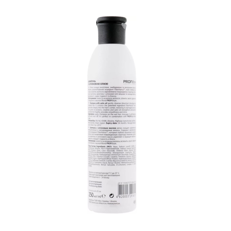 Шампунь PROFIstyle Blond "С сатиновым маслом" — больше, чем просто очищающее средство, это настоящий ритуал восстановления и ухода за волосами. Его формула сочетает эффективность и нежность: мягкие моющие компоненты из кокоса и рапсового масла деликатно смывают загрязнение и избыток себума, сохраняя естественный баланс кожи головы.