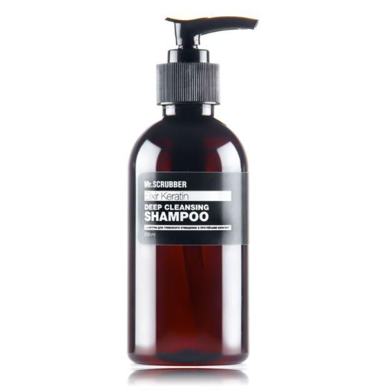 Натуральный шампунь для поврежденных волос «Elixir Keratin Deep Cleansing» Hair Care скрупулезно очищает локоны, смывает остатки стайлинг-препаратов и излишки себума. Препарат реконструирует волосяные нити, укрепляет фолликулы, облегчает расчесывание.