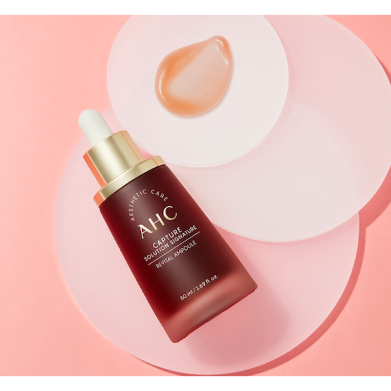 Сыворотка capture solution signature revital ampoule - содержит комбинацию омолаживающих и увлажняющих компонентов, которые комплексно воздействуют на глубокие слои эпидермиса и улучшают состояние кожи. В составе есть гидролизованный коллаген - удерживает влагу в клетках, разглаживает кожу, предотвращает появление морщин. Лизат лактобактерий - поддерживает здоровье микрофлоры эпидермиса, контролирует синтез меланина и способствует восстановлению кожи. Ниацинамид - уменьшает жирный блеск, визуально уменьшает поры и выравнивает тон кожи.Экстракт цветков ромашки - смягчает, успокаивает, борется с покраснениями и зудом. Сыворотка ревитализирует, оживляет кожу, уменьшает заметность пор и улучшает цвет лица. Средство от AHC имеет структуру гидрогеля, который способствует лучшему усвоению компонентов и проникает в глубокие слои кожи.