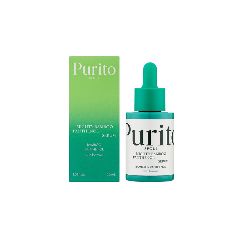 Сыворотка Mighty Bamboo Panthenol Serum - средство, которое мгновенно дарит комфорт коже, сияние и глубокое очищение. В составе есть 13% пантенола, который превращается в витамин В5, эффективно увлажняет, уменьшает покраснения, заживляет микроповреждения и снижает воспаление. Экстракт бамбука - богат антиоксидантами, минералами и аминокислотами, подтягивает кожу, уменьшает морщины, выравнивает тон и укрепляет кожный барьер. Эктоин - природный компонент с выраженным успокаивающим, регенерирующим и защитным действием. Ниацинамид - осветляет, выравнивает текстуру, укрепляет кожный барьер и повышает эластичность. Сыворотка делает кожу гладкой, увлажненной и сияющей, восстанавливает гидролипидный баланс и заметно улучшает текстуру кожи. Средство от PURITO гипоаллергенное без отдушек для чувствительной кожи, которое быстро снимает воспаление.