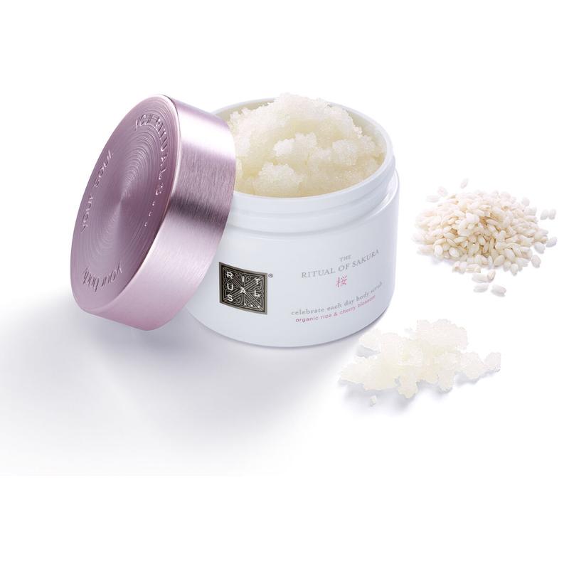 Скраб для тела Body Scrub The Ritual of Sakura – это роскошный ритуал ухода, который превращает обычную очистку в минуты настоящего удовольствия. Его формула построена на сочетании сахарных компонентов и драгоценных натуральных масел, нежно очищающих, питающих и наполняющих кожу шелковистой мягкостью.