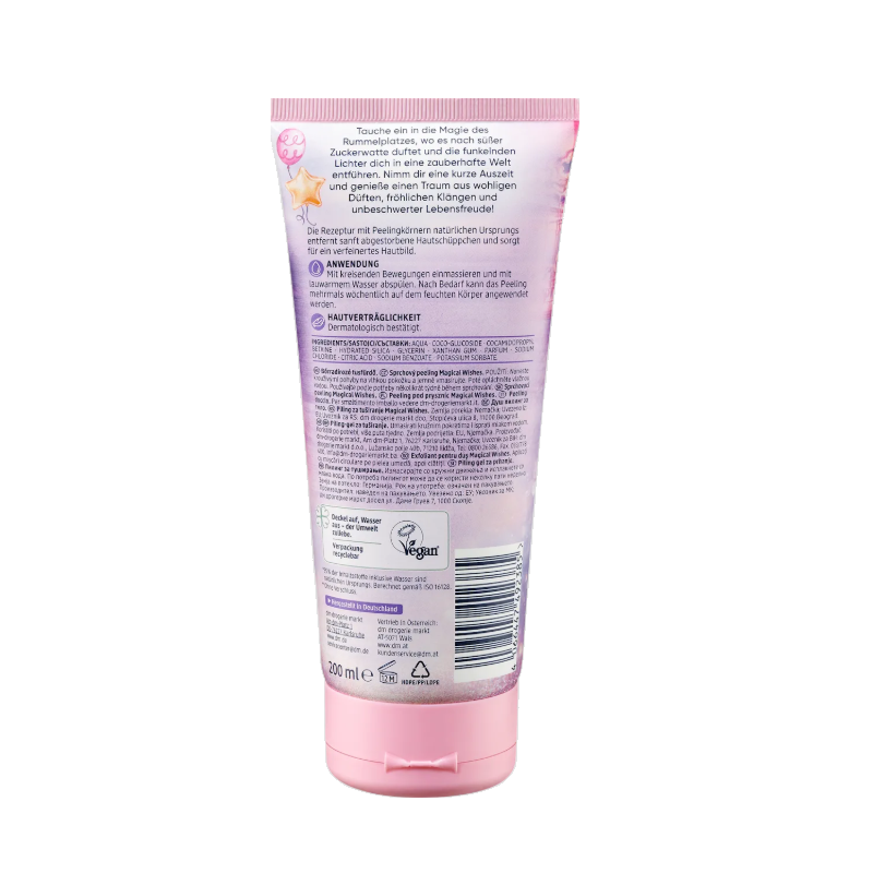 Скраб-пилинг для тела Balea Magical Wishes имеет мягкую, но эффективную формулу, сочетающую увлажняющие, очищающие и отшелушивающие компоненты.