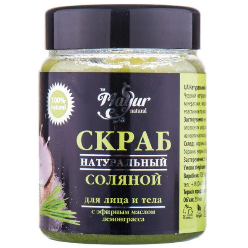 Профессиональный солевой скраб Лемонграсс обеспечивает тщательный и комфортный уход за кожей лица и тела. Он безболезненно отшелушивает омертвевшие эпителиальные чешуйки, устраняет излишки себума, растворяет комедоны, разглаживает микрорельеф. Препарат разработан на основе натуральных ингредиентов растительного происхождения и является органическим продуктом.