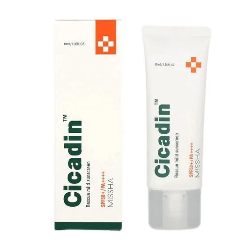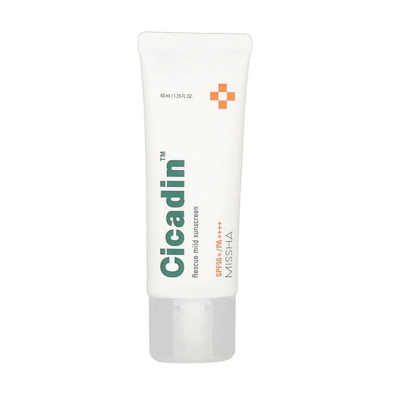 Солнцезащитный крем с центелой азиатской Missha Cicadin Rescue Mild Sunscreen SPF50+ PA+++ и минеральными фильтрами для чувствительной кожи.