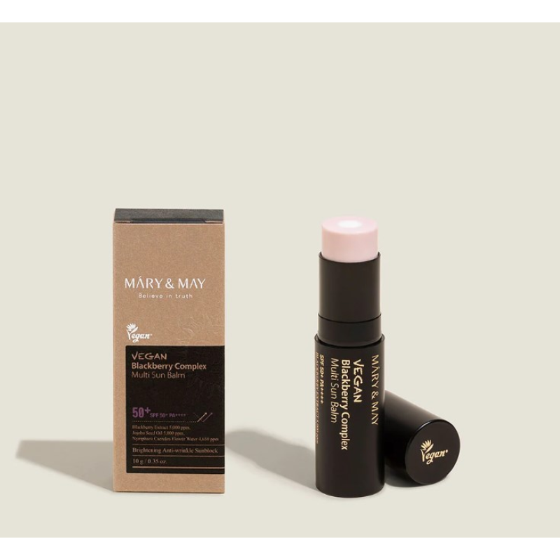 Солнцезащитный стик Vegan Blackberry Complex Multi Sun SPF50+ PA++++ - инновационный бальзам, который сочетает мощную защиту от УФ-лучей и компоненты для защиты от фотостарения. В составе есть комплекс ежевики - это сильный антиоксидант, который защищает клетки кожи и замедляет процессы старения. Масло семян жожоба - тонизирует, увлажняет и успокаивает кожу. Формула средства имеет масляную и кремовую текстуру, которая обеспечивает эластичность кожи, глубокое увлажнение и выравнивание тона. Средство работает над регуляцией себума, при этом не забивает поры, не оставляет блеска или липкости. Форма стика помогает легко нанести средство, и идеально подходит для повторного применения в течение дня. Стик имеет веганский состав, что является безопасным и для окружающей среды. Средство от Mary&May это не просто санскрин, а полноценный уходовый продукт для ежедневного использования, который защищает и совершенствует вашу кожу.
