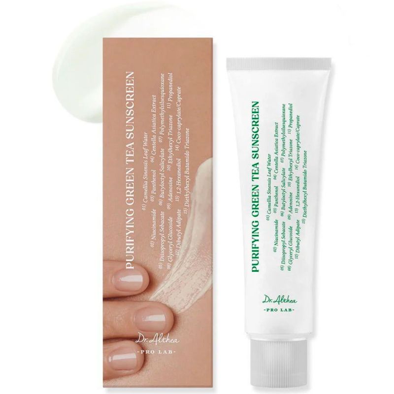 Солнцезащитный крем с зеленым чаем Dr.Althea Purifying Green Tea Sunscreen сочетает в себе надежную защиту от UV-излучения с комплексным уходом за кожей. Его формула содержит современные фильтры, обеспечивающие высокую степень защиты от UVA/UVB без раздражения, фотонестабильности или белой пленки.