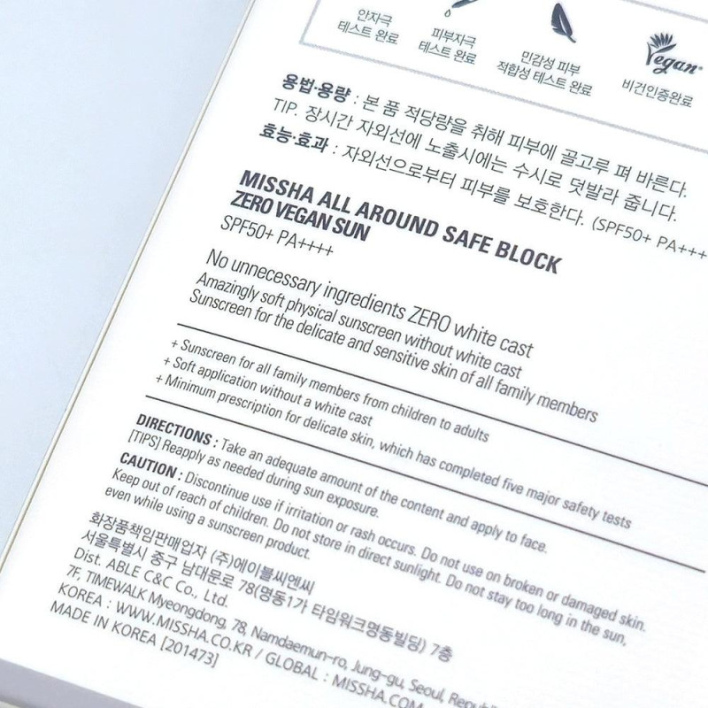 Солнцезащитный крем Missha All Sound Block Zero Vegan Sun с минеральными фильтрами и успокаивающим эффектом.
