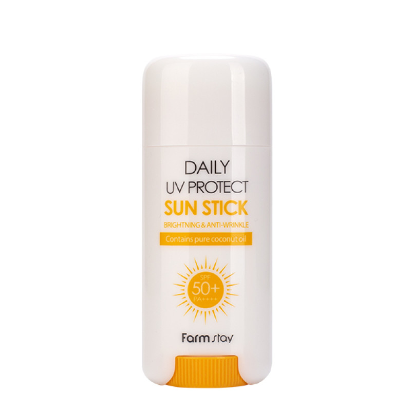 Солнцезащитный стик FarmStay Daily UV Protect Sun Stick SPF50+PA++++ с UV-фильтрами и компонентами ухода.