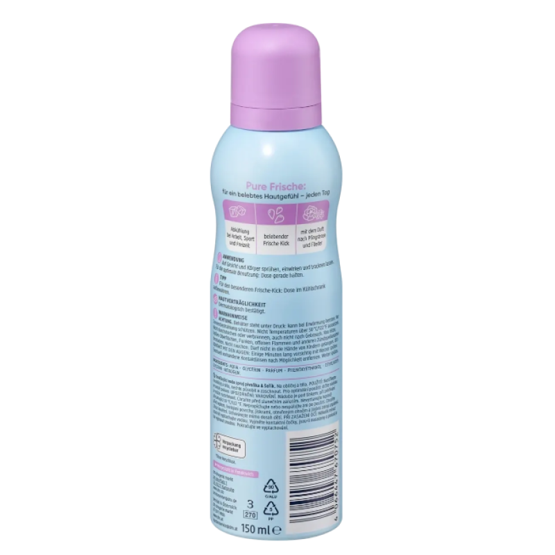 Нанесение:Распылите на лицо и тело, дайте подействовать и дайте высохнуть. Для оптимального использования: держите баллончик вертикально.