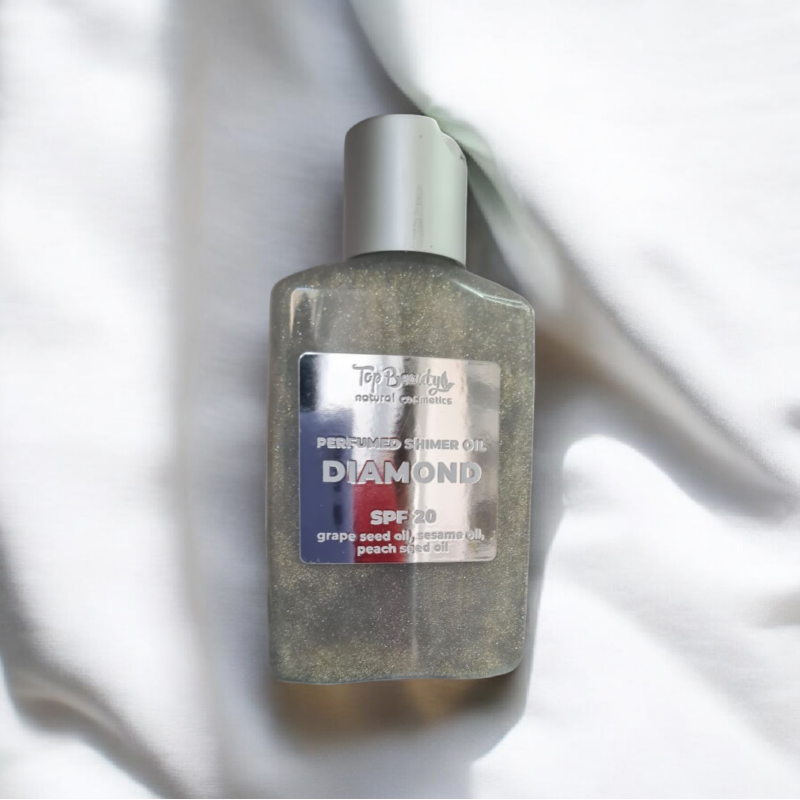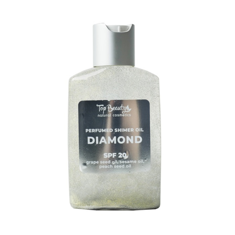 Сухое парфюмированное масло для загара и сияния кожи Top Beauty SPF 20 Diamond создано, чтобы твоя кожа не просто загорала, а блестела буквально. Формула из SPF 20 защищает от вредного воздействия солнца, а микросияющие частицы создают эффект мягкого, бриллиантового свечения.
