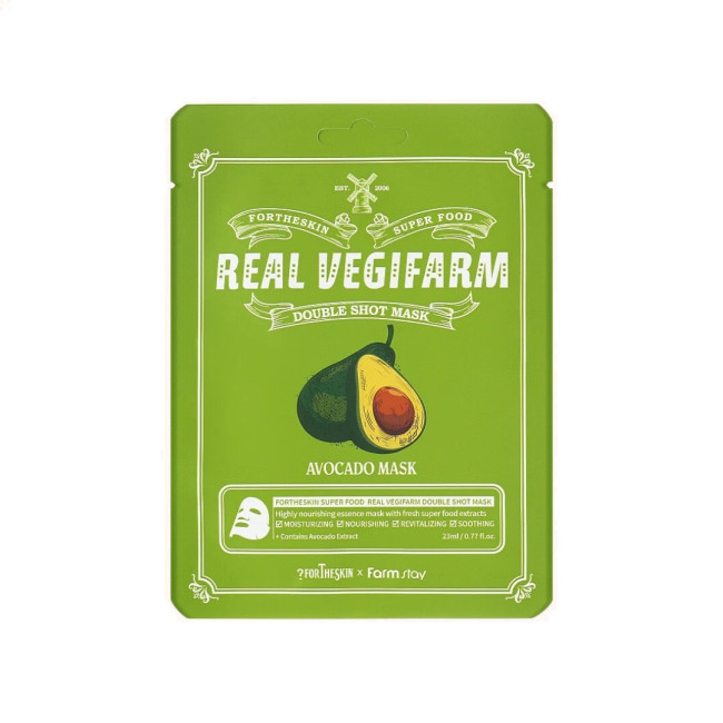 Насыщенная увлажнением, мягкостью и заботой – тканевая маска Fortheskin Super Food Real Vegifarm Double Shot Mask-Avocado с экстрактом авокадо (1000 ppm) создана, чтобы подарить коже питания и обновление одним движением.