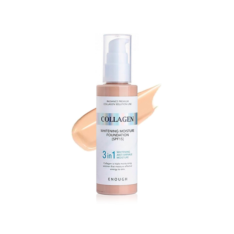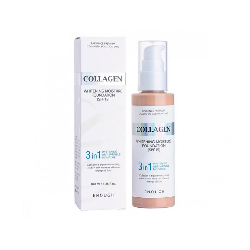 Тональный крем Collagen Whitening Moisture Foundation SPF 15 - уникальное средство, которое оказывает тройное действие, помогает создать безупречный макияж и скрыть все несовершенства кожи. Он отлично подстраивается под ваш оттенок кожи, не закупоривает поры, делает кожу приятной на ощупь, не создает "эффект маски".