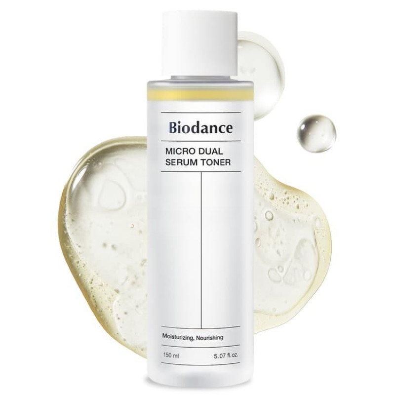 Тонер Biodance Micro Dual Serum Toner с гиалуроновой кислотой, ниацинамидом и ферментами. Этот многофункциональный тонер сочетает в себе силу активных увлажняющих ингредиентов, антиоксидантов и ферментов для комплексного ухода за кожей.