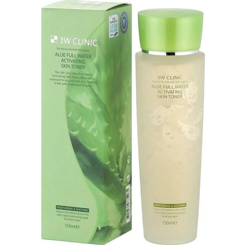 Тонер для лица 3W Clinic Aloe Full Water Activating Skin Toner обладает увлажняющими, смягчающими и успокаивающими свойствами благодаря сочетанию базовых увлажнителей, растительных экстрактов и активных ингредиентов.